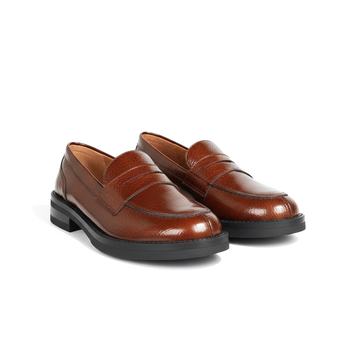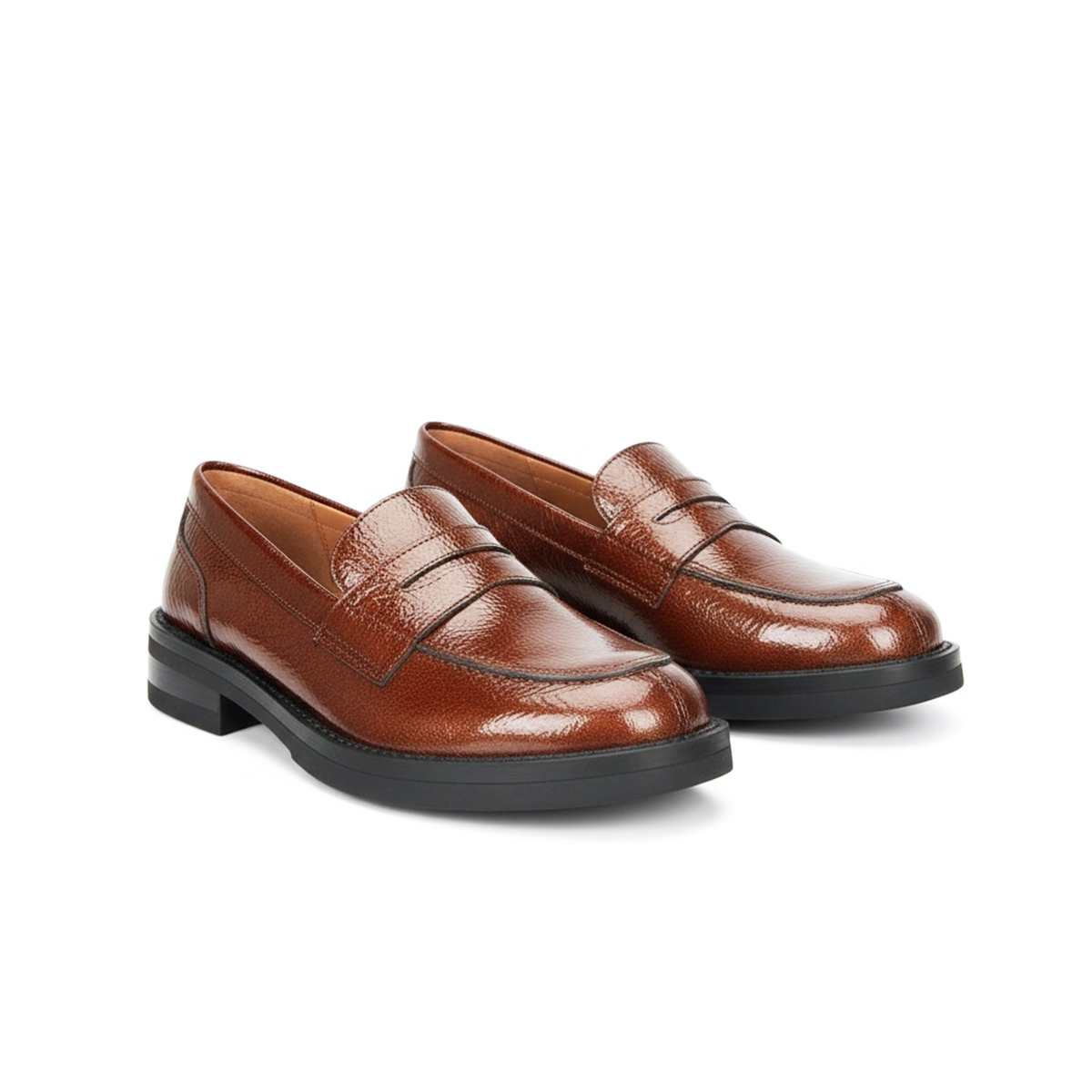 180 CHAUSSURE EN CUIR TABAC VERNIS