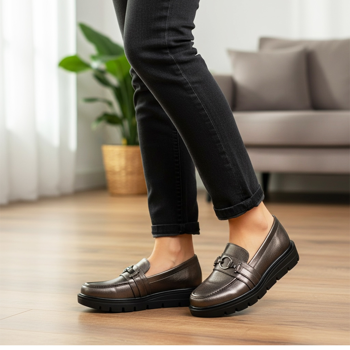 6042 CHAUSSURE EN CUIR GRIS DORE