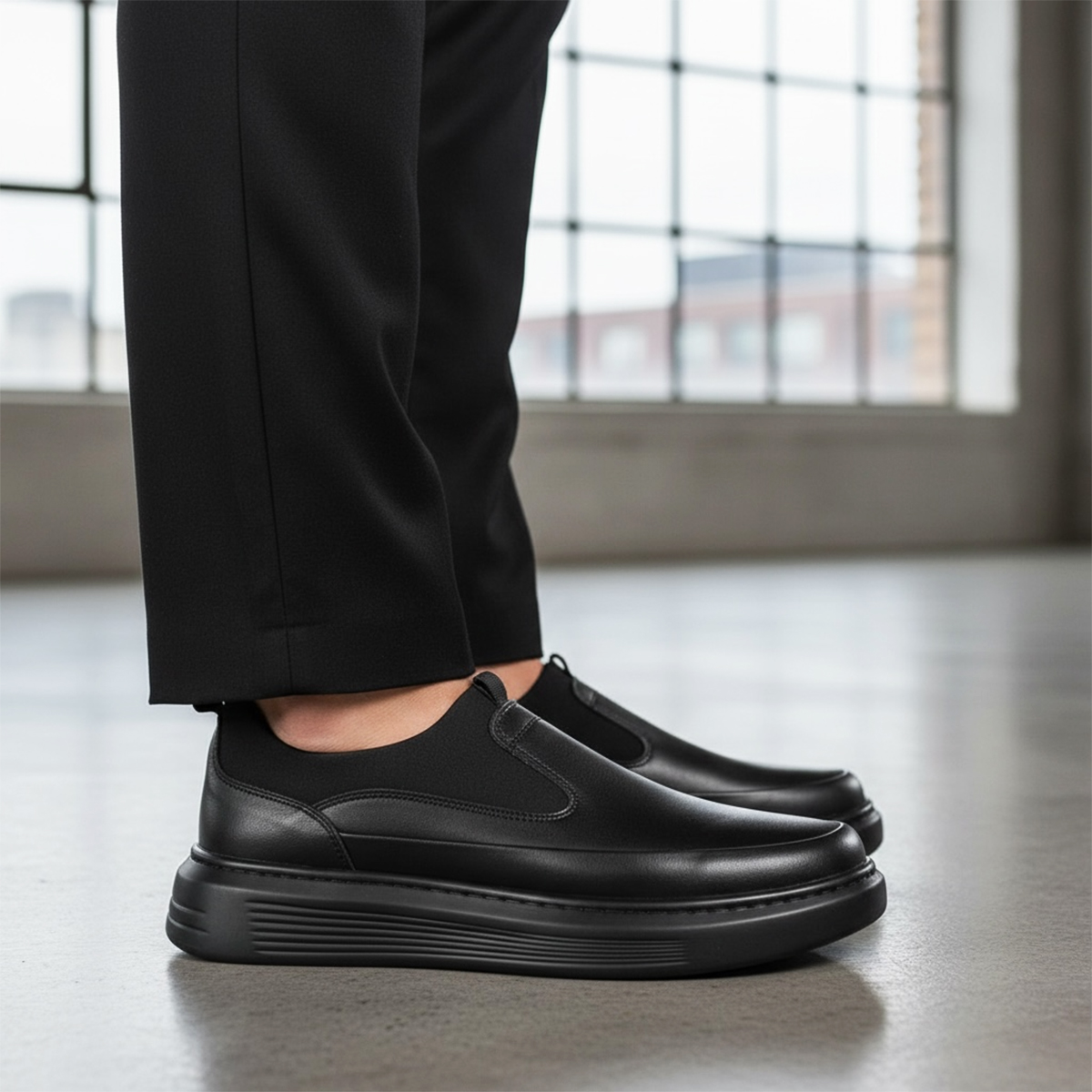334 CHAUSSURE CONFORTABLE EN VRAI CUIR NOIR